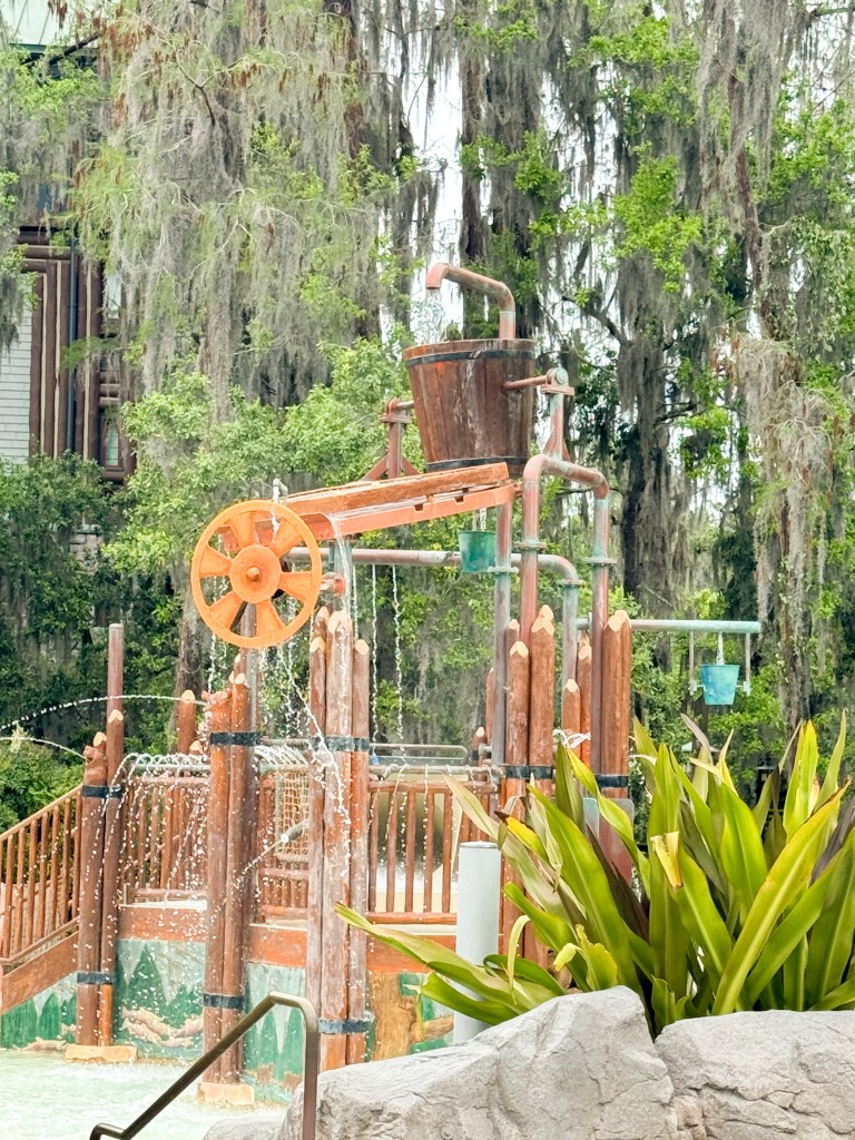 Elsewhere on property, we found a basketball court with picnic area and grill. Grilling utensils can be checked out from the hotel. I love how imagineers think of all the details. Are there bears in Central Florida? Not typically. But the addition of the bear proof trash cans? Chef’s kiss.