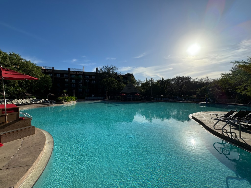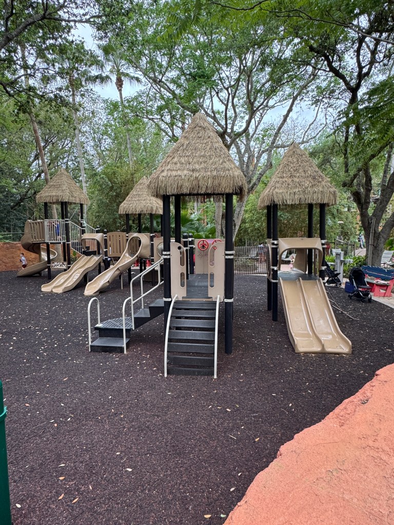 Past the main Animal Kingdom Lodge pool is the Hakuna Matata Playground which is perfect for littles. If you are tall and following your kid around on the playground equipment, you’ll be able to catch a view of the resort flamingo pond and maybe even a giraffe out on the savannah!