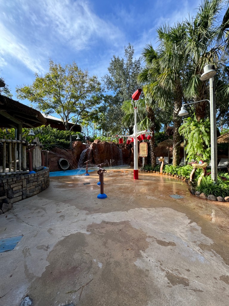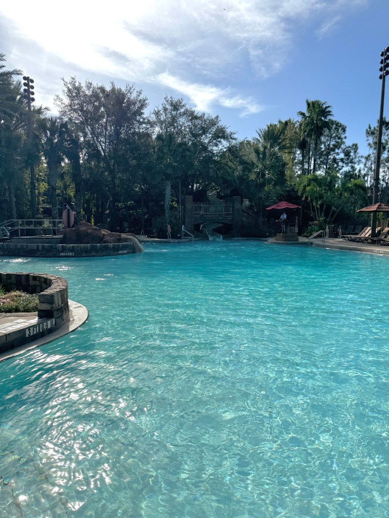 Jambo House and Kidani Village both offer large pools with zero entry areas and at least one slide. Kidani Village also has the splash pad on property. Both pool areas have spas (hot tubs).