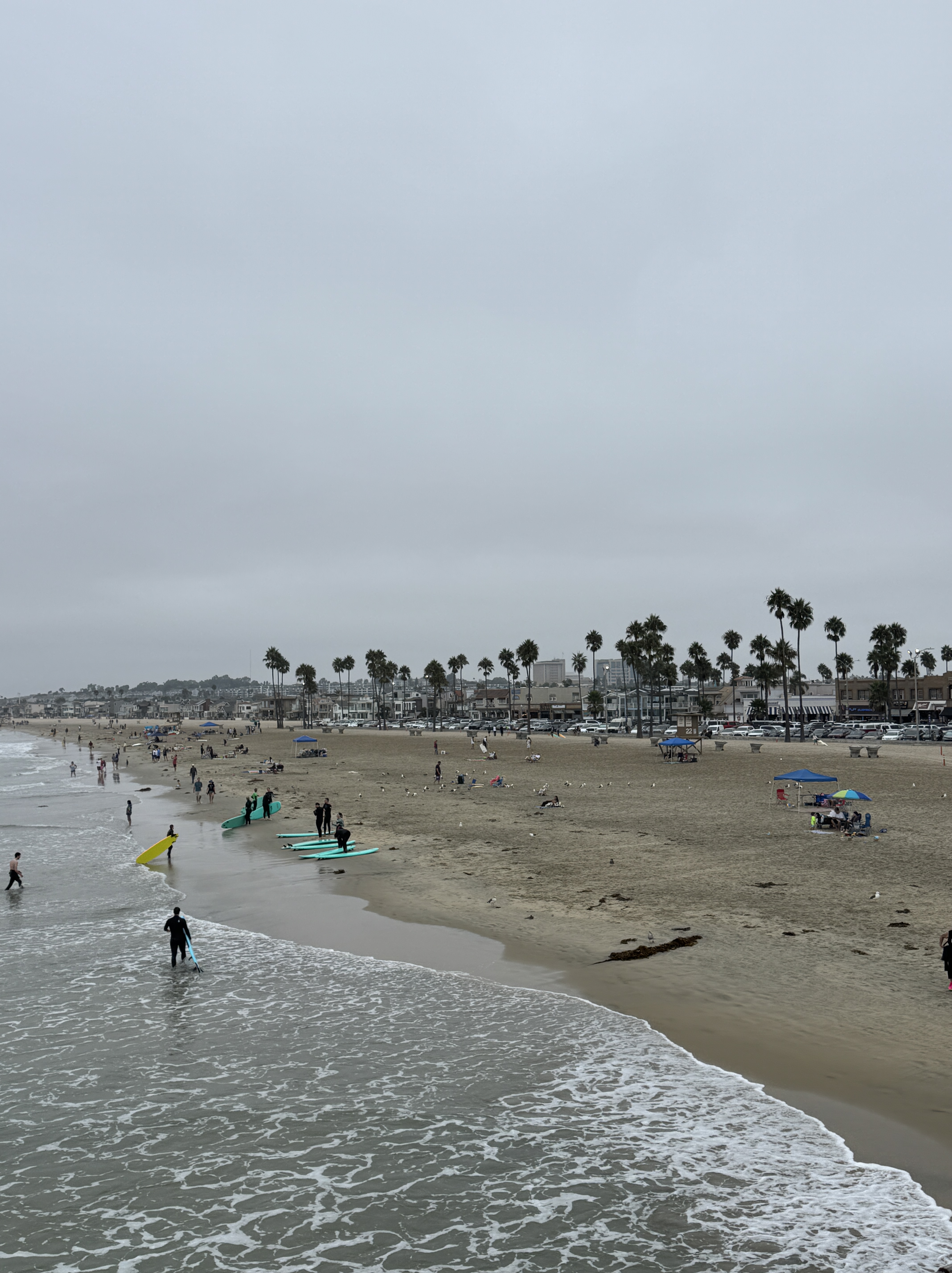 My priority for our non-park day was to get my kids to the beach. We drove about 35 minutes over to Newport Beach. We parked on the street, and walked around the Newport Beach Pier and made sure to get the kids to touch the Pacific Ocean and some sand! The baby needed the experience (according to me) and my toddler loves the “Beach” episode of Bluey so it was a fun experience for him. We were there on a Sunday and there was a farmer’s market happening on the sidewalk leading up to the pier that had some great looking fruit and other vendors.