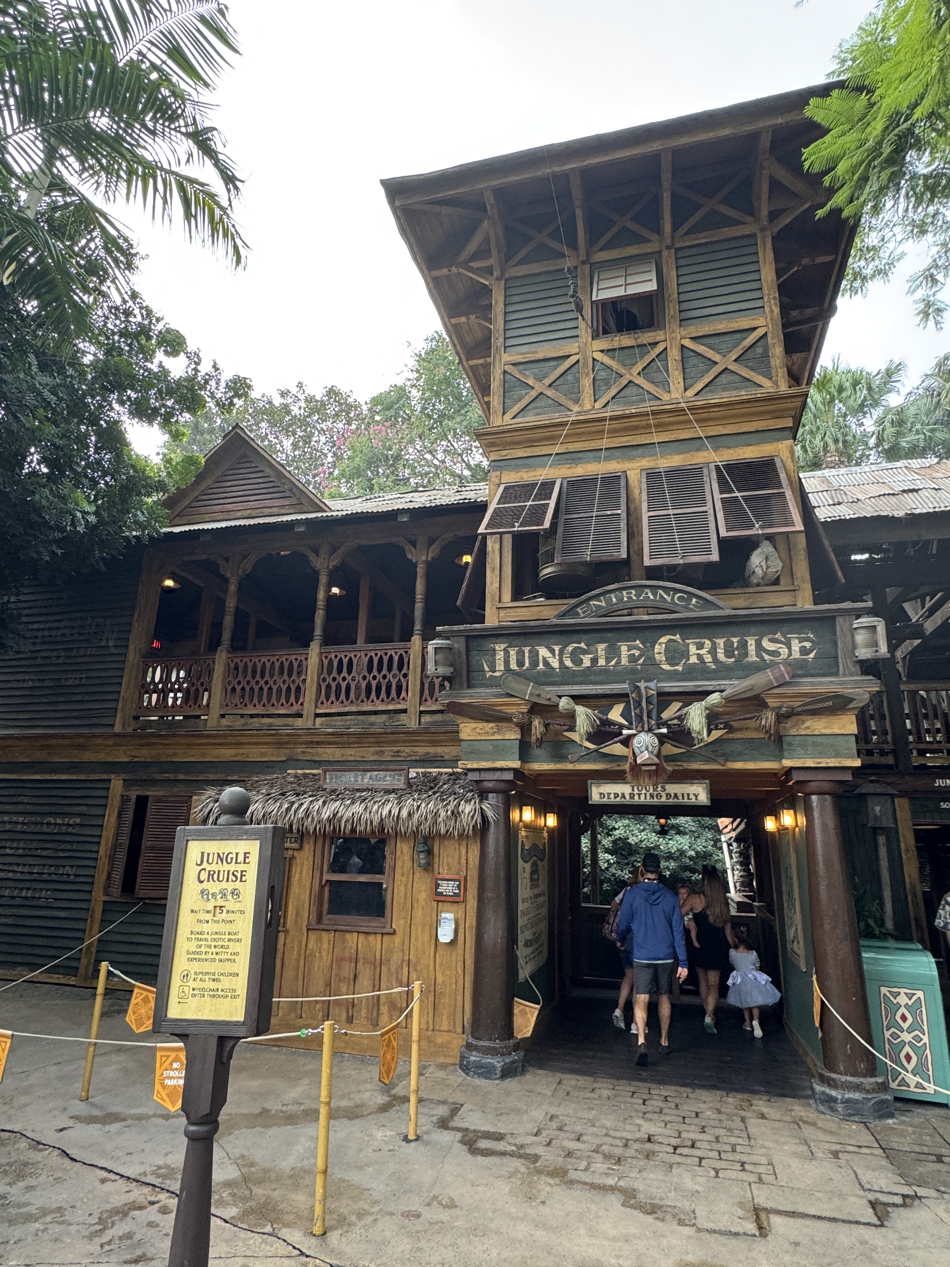 - We went for Jungle Cruise in Adventureland first at the request of my toddler that has been reading the Little Golden Book. This is actually a great strategy, as it is close to the front of the park, does not offer lightning lane, and the line can be long and hot. We were on the ride by 8:04 am.