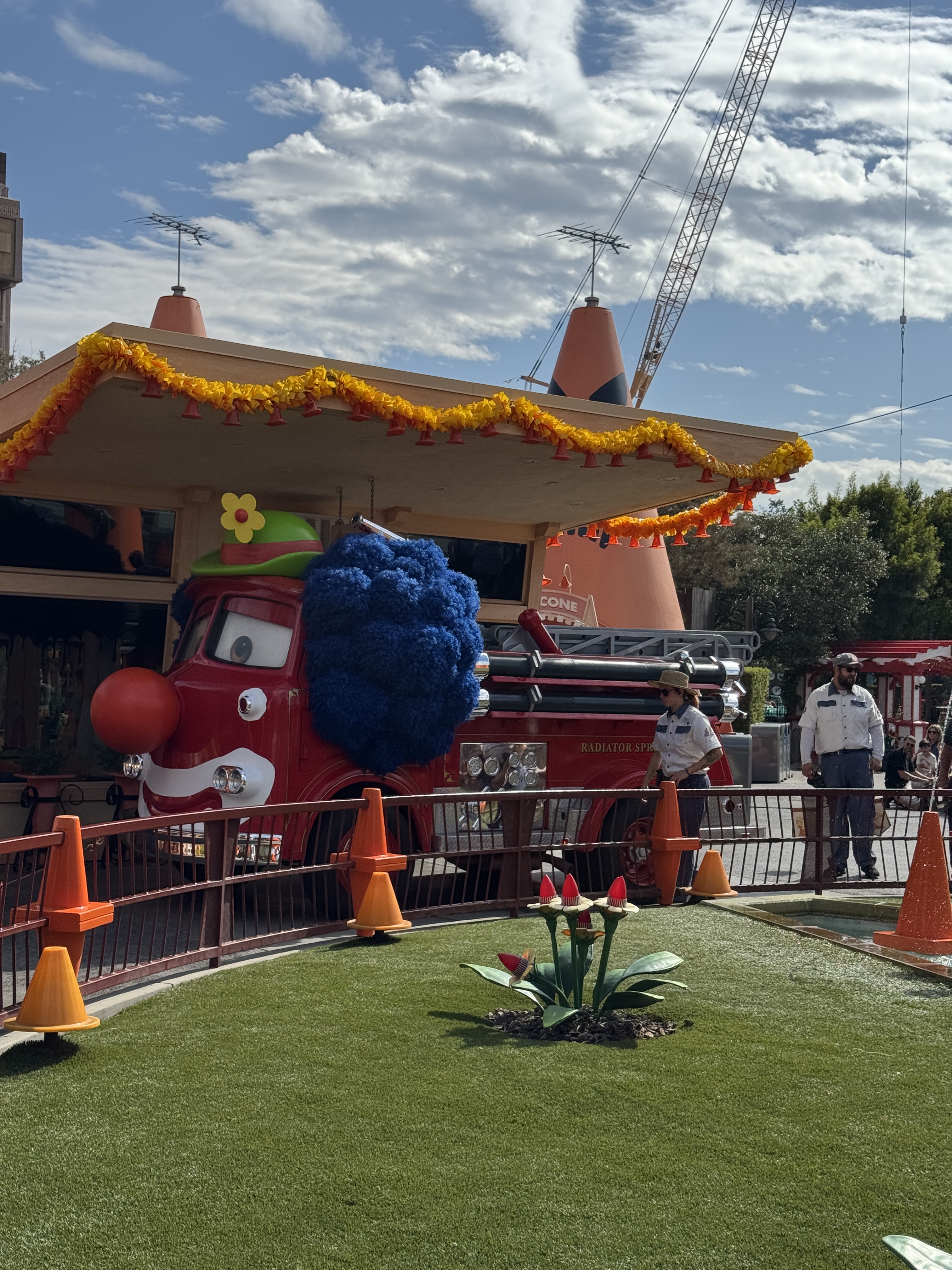 - Walked around Cars Land – happened upon Lightning McQueen in his Halloween costume meeting by the closed Radiator Springs Racer ride entrance.