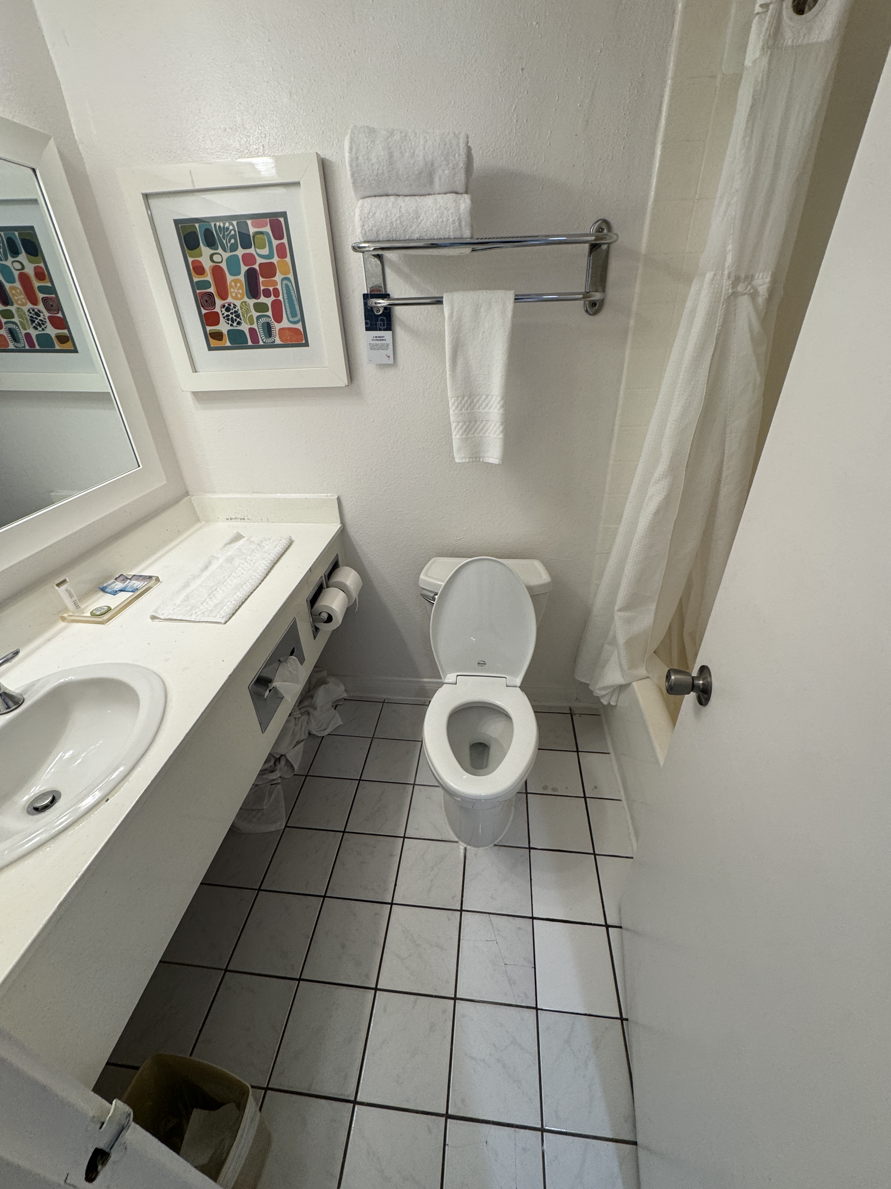 - Could use updates. As with the Fairfield, our bathroom is need of a full refurbishment. Tiles were cracked, grout was coming up, and paint was peeling on tiles. The door to the room also didn’t seal the best but it did have multiple layers of security which I always appreciate. Water temperature was sensitive.