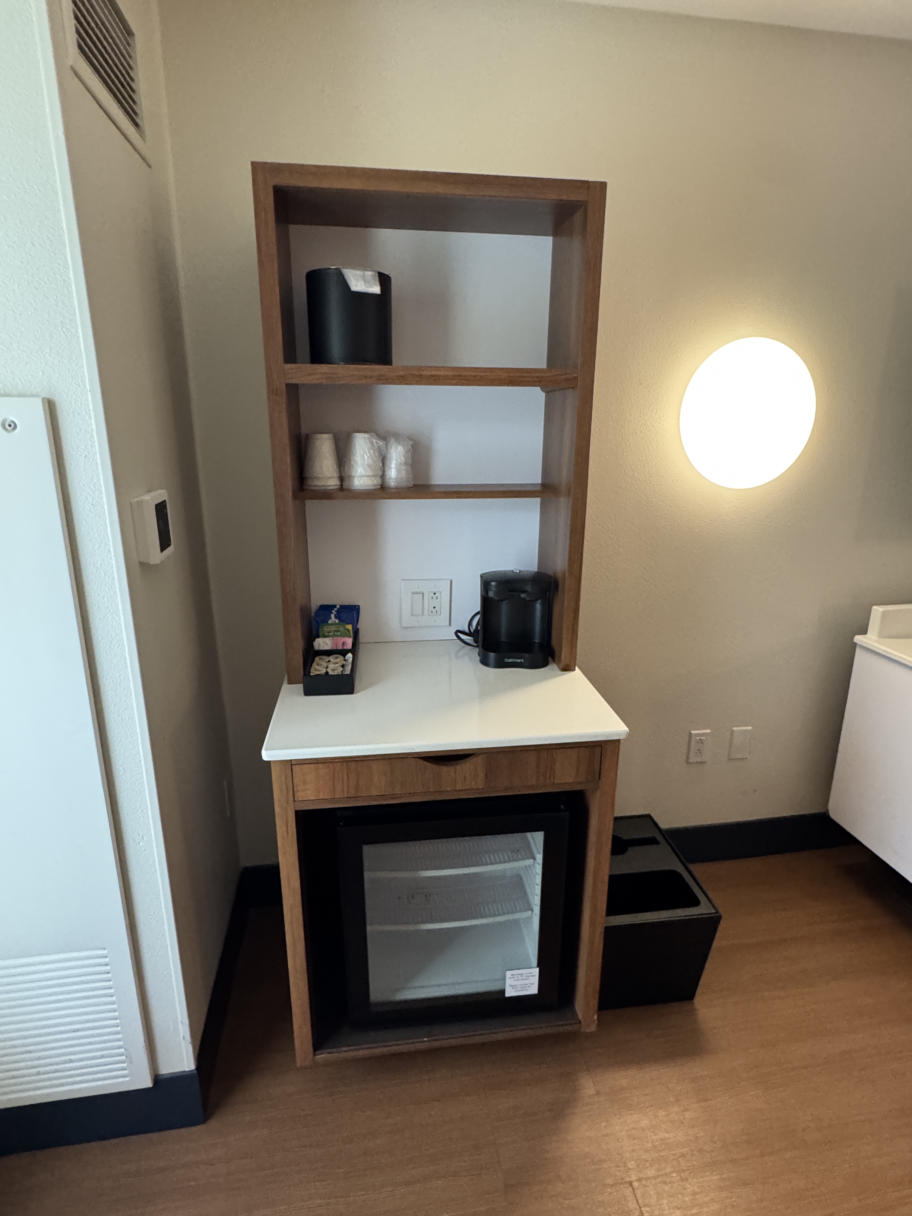 - Decent storage for a hotel room. Closet to hang clothes, closet with shelves, pantry area with shelves, and then a 6-drawer dresser.
