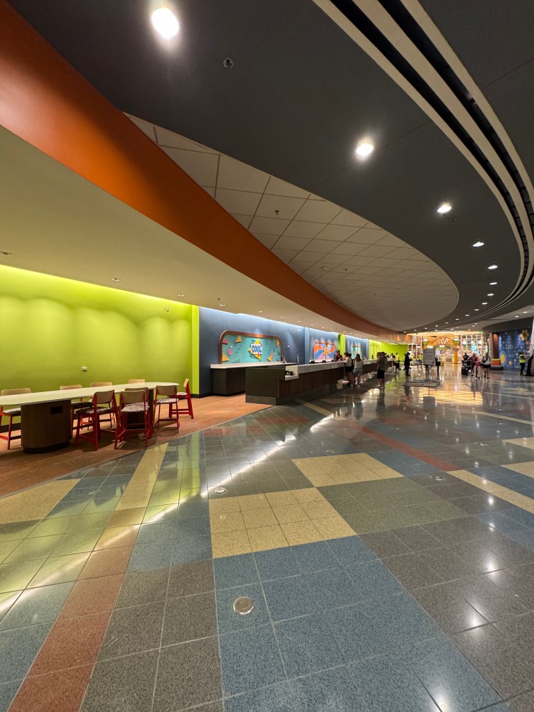 Pop Century’s lobby is finishing renovations and is home to the Everything POP Shopping and Dining – the resort gift shop and food court – and an arcade.