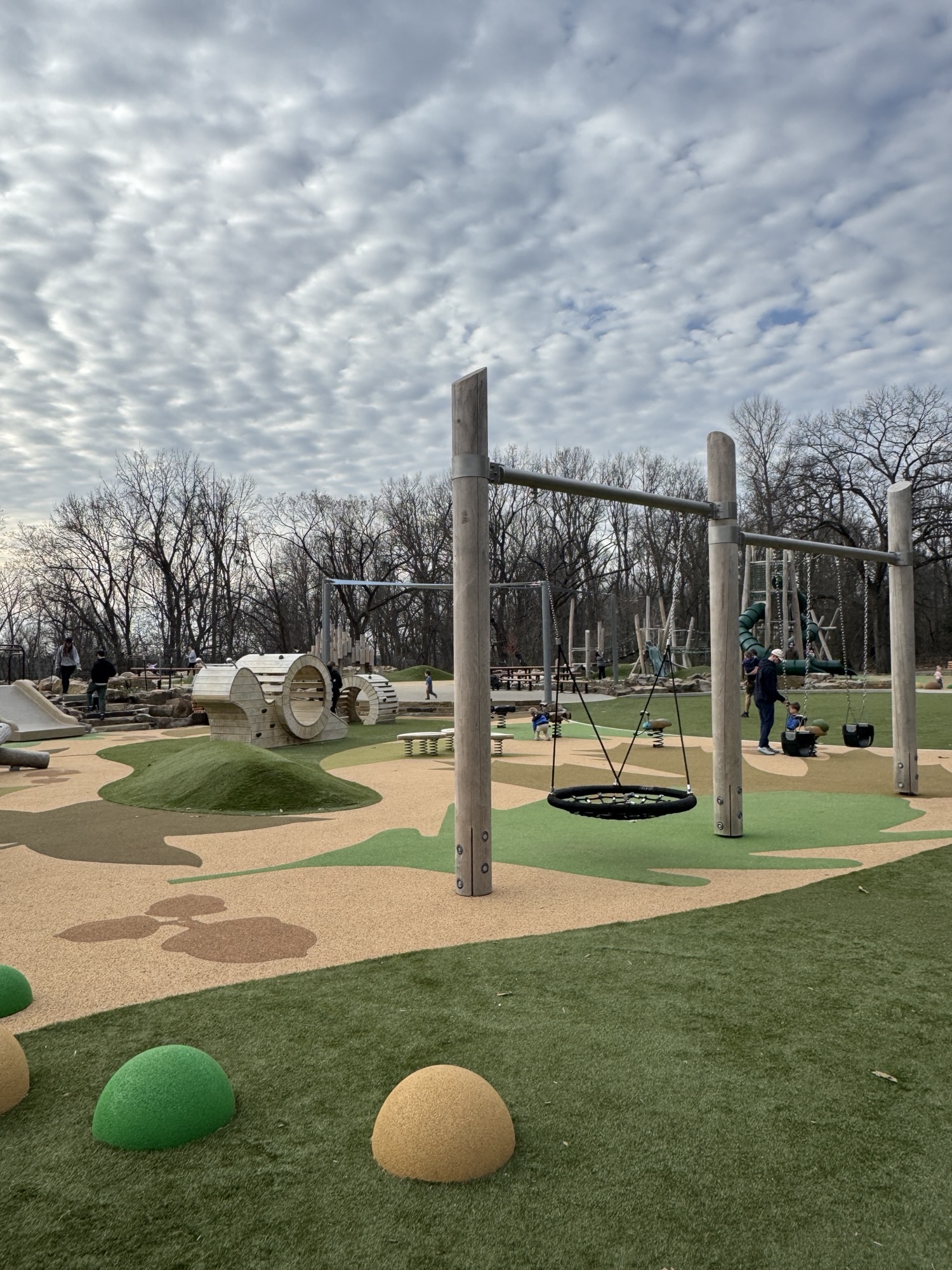- Hummel Park | This is more out on the outskirts of town, west of the airport. This playground was perfect for my kids. So many slides, ramps, and things to climb. There are two play structures, one for younger kids and one for older. My 3-year-old was able to do a good amount on the older kid structure, but there is plenty for older kids as well.